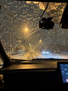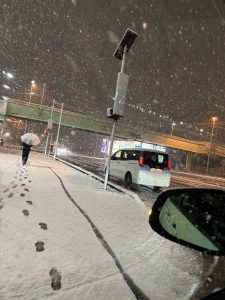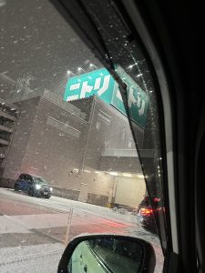 田舎を出発、その頃には少しですが雪は降り始め、途中渋滞もあり(同じ考えの人が多かったのでしょうか)、思うように進みません。やむ気配はなくどんどん積もってきます。