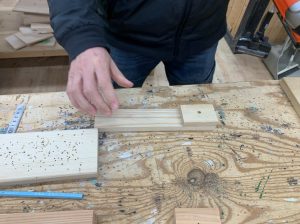 まずは、カットされている木材に電動ドリルで穴開けしてネジ止め、妻は電動ドリルを使った事がないので、ケガをしないか様子を見ながらの共同作業。