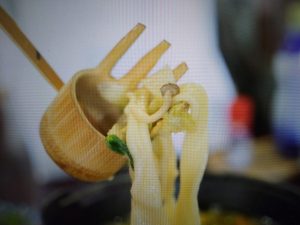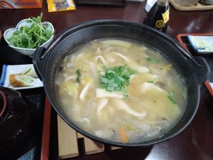 こちらのほうとうは、山梨のとは違って、みそではなく、しょうゆベースで、地元で採れたお野菜が沢山入っていて、おうどんもモチモチでとてもおいしかったです。そして、なんと!おうどんをひしゃくですくうというちょっとワクワクの初めての体験もしてきました。