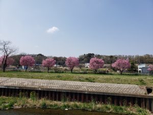 自宅から徒歩10分ほどの場所に柳瀬川があり、川沿いには桜の木が並んでいます。
